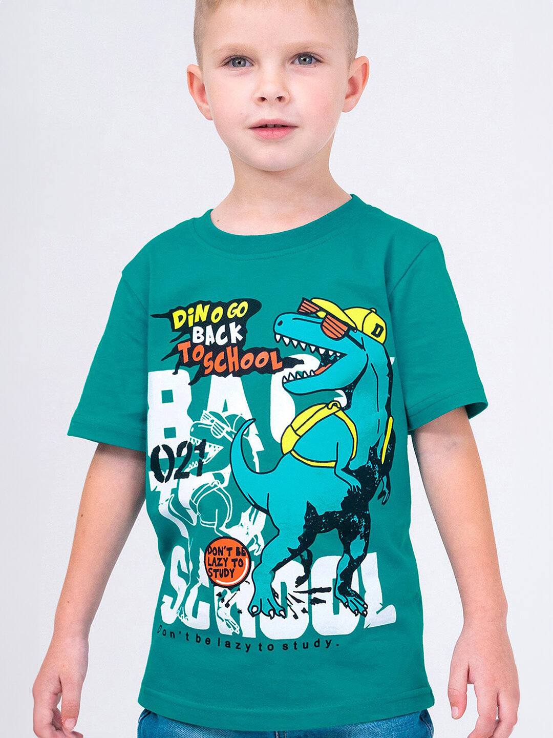 Купить Детская футболка с принтом для девочки для мальчика хлопок HappyFox, HF00123 размер 128, цвет бирюзовый.динозавр