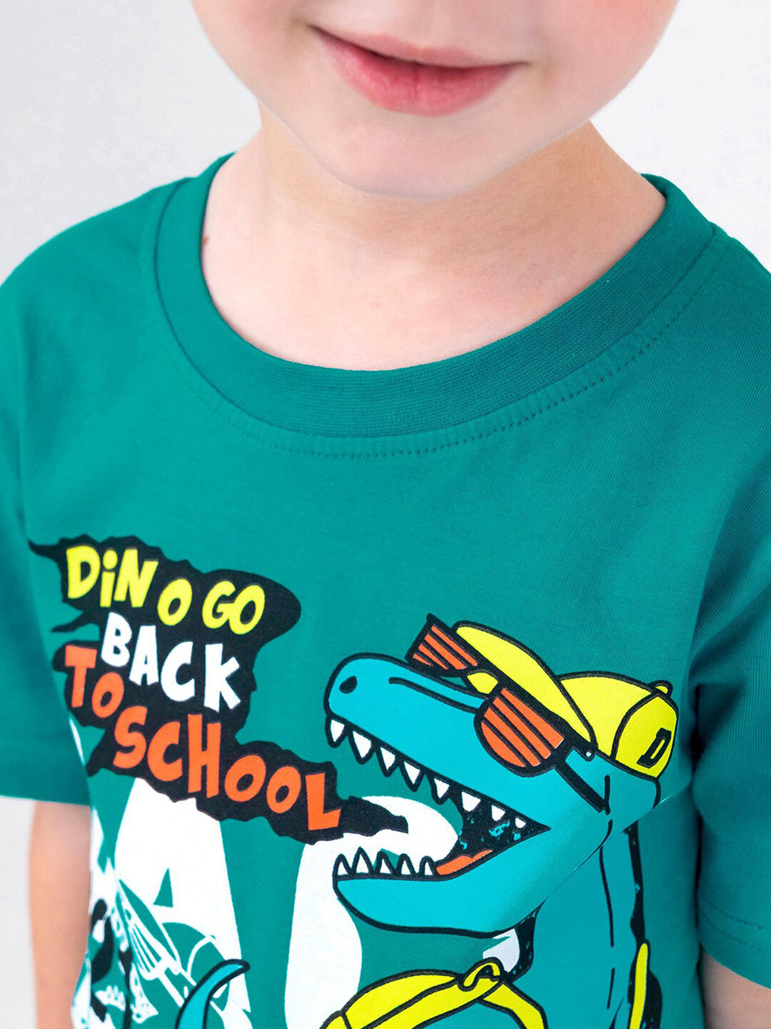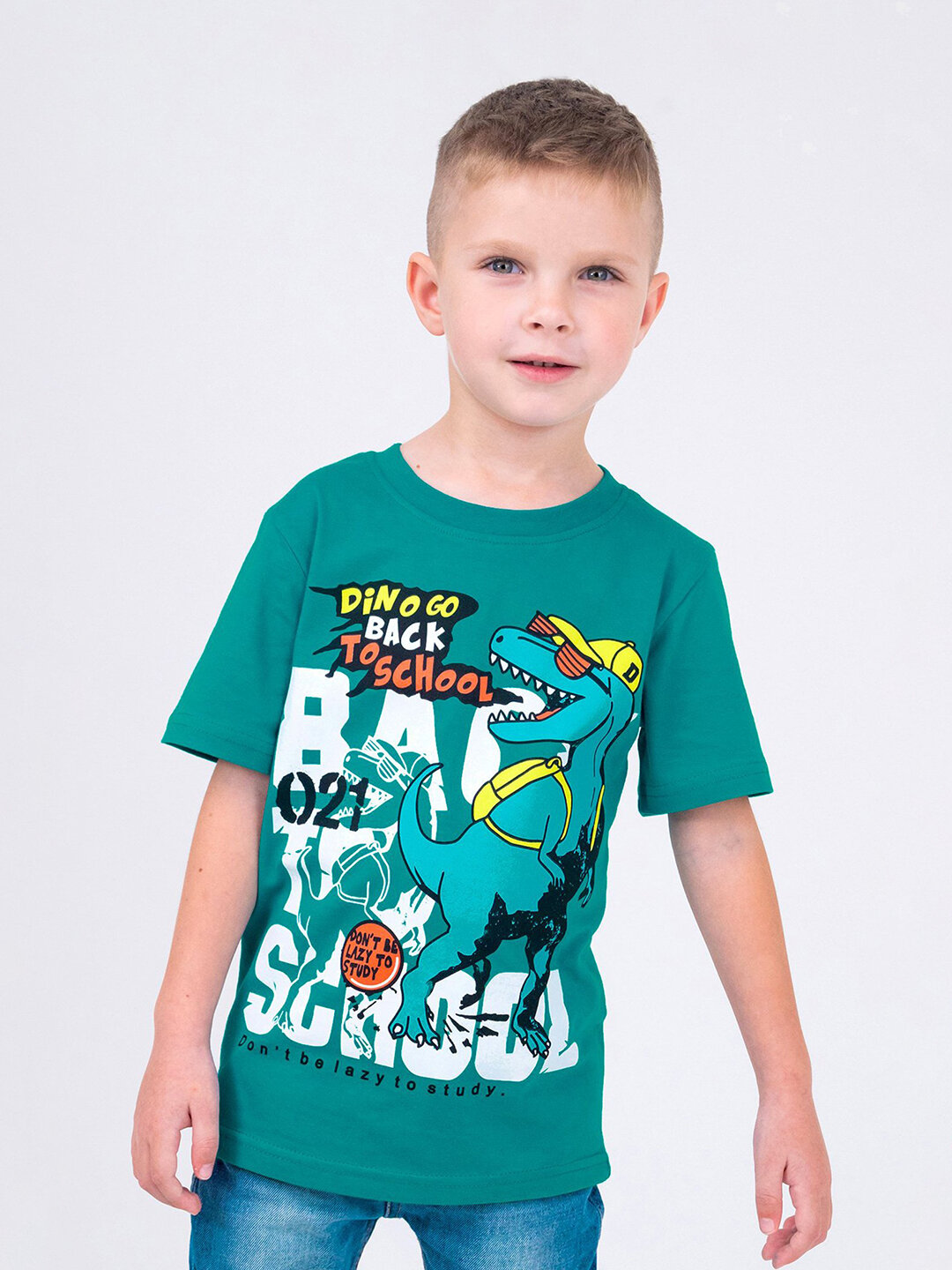 Купить Детская футболка с принтом для девочки для мальчика хлопок HappyFox, HF00123 размер 104, цвет бирюзовый.динозавр