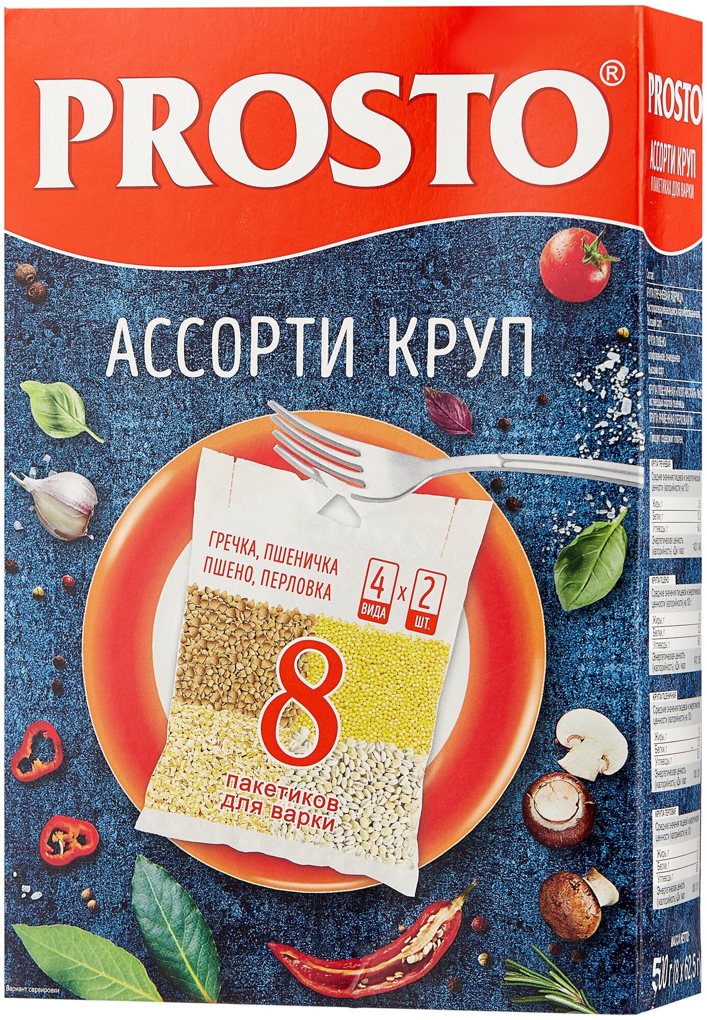 Купить Ассорти круп PROSTO (греча, пшено, пшеничка, перловка) в варочных пакетиках, 8 шт х 62,5 г