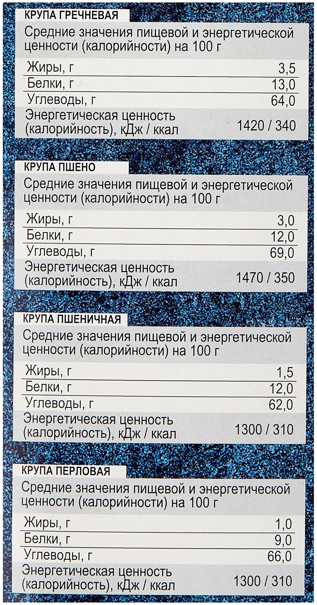 | Вид крупы | смесь круп |