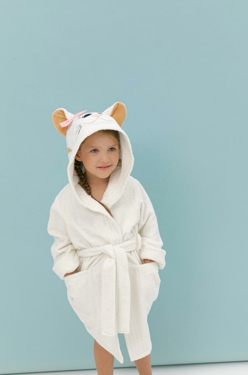 Купить Детский халат "Кошка" от Fluffy Bunny для роста 98-104 см, цвет молочный