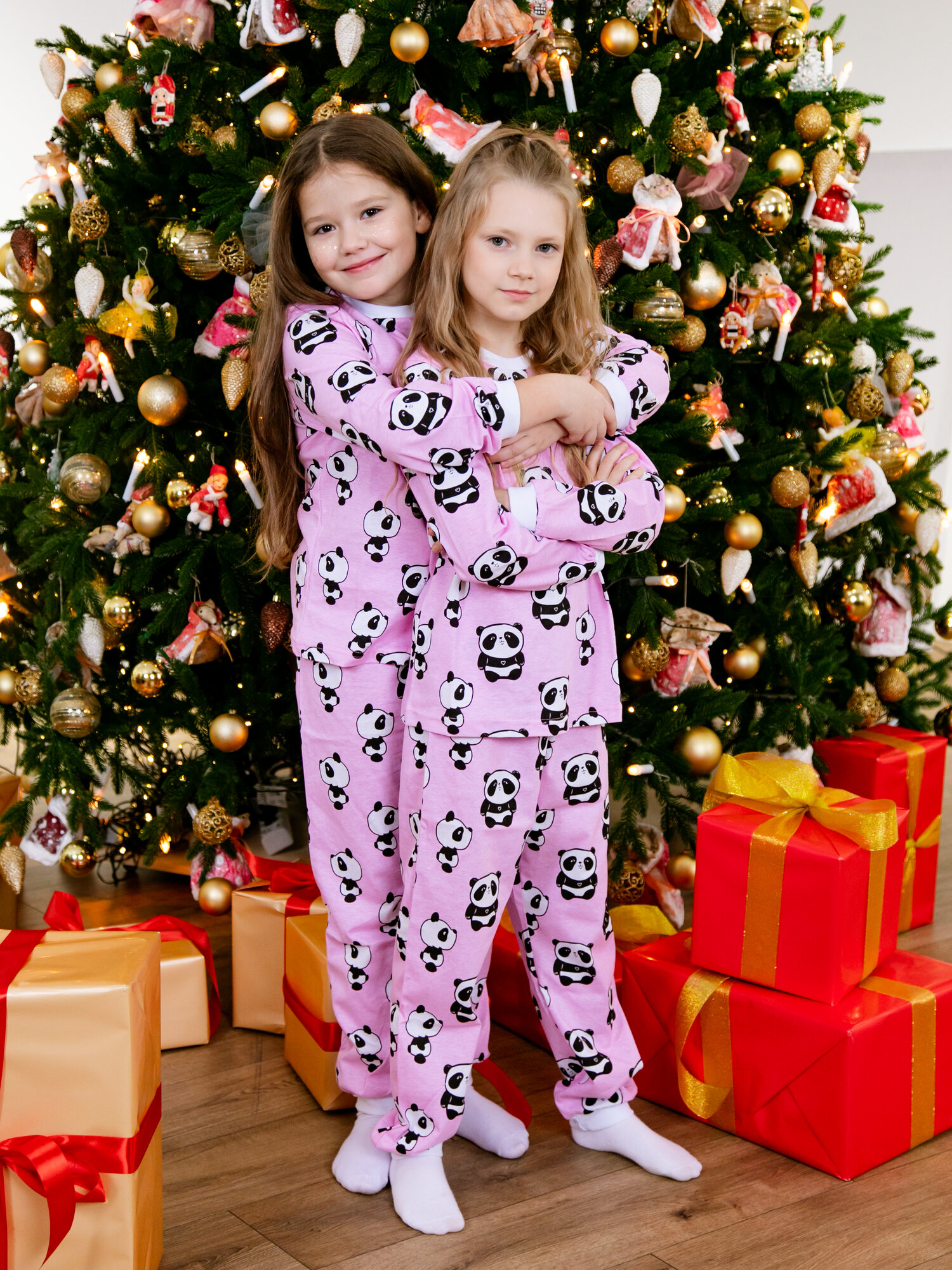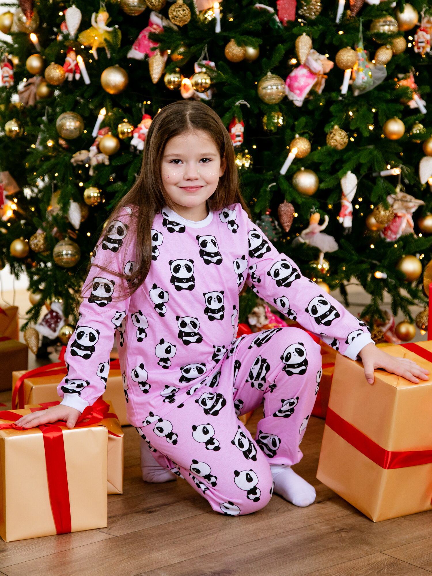 Пижама Веселый Малыш Panda, размер 122, белый, розовый, черный