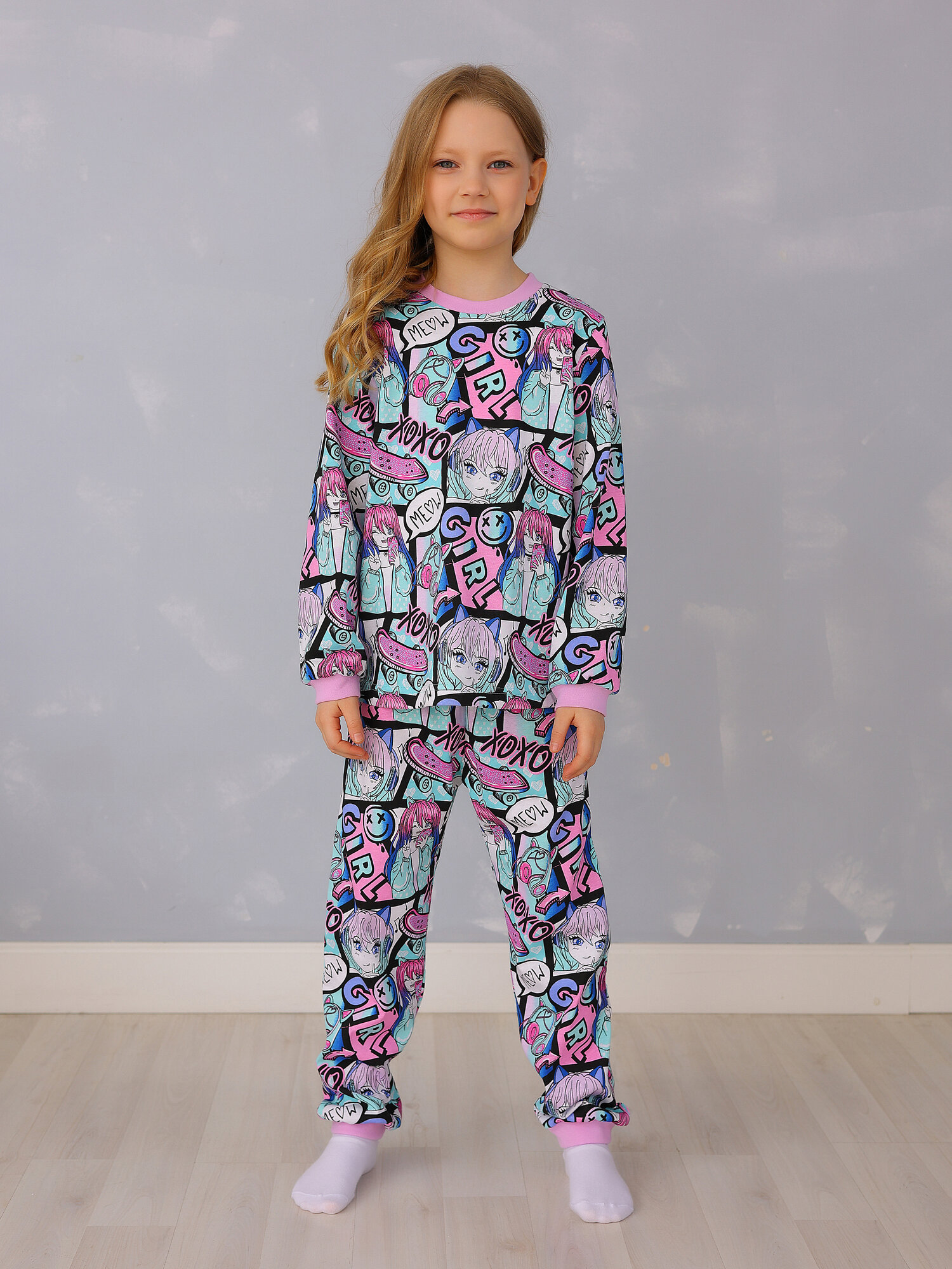 Пижама Веселый Малыш Аниме, размер 110, голубой/розовый