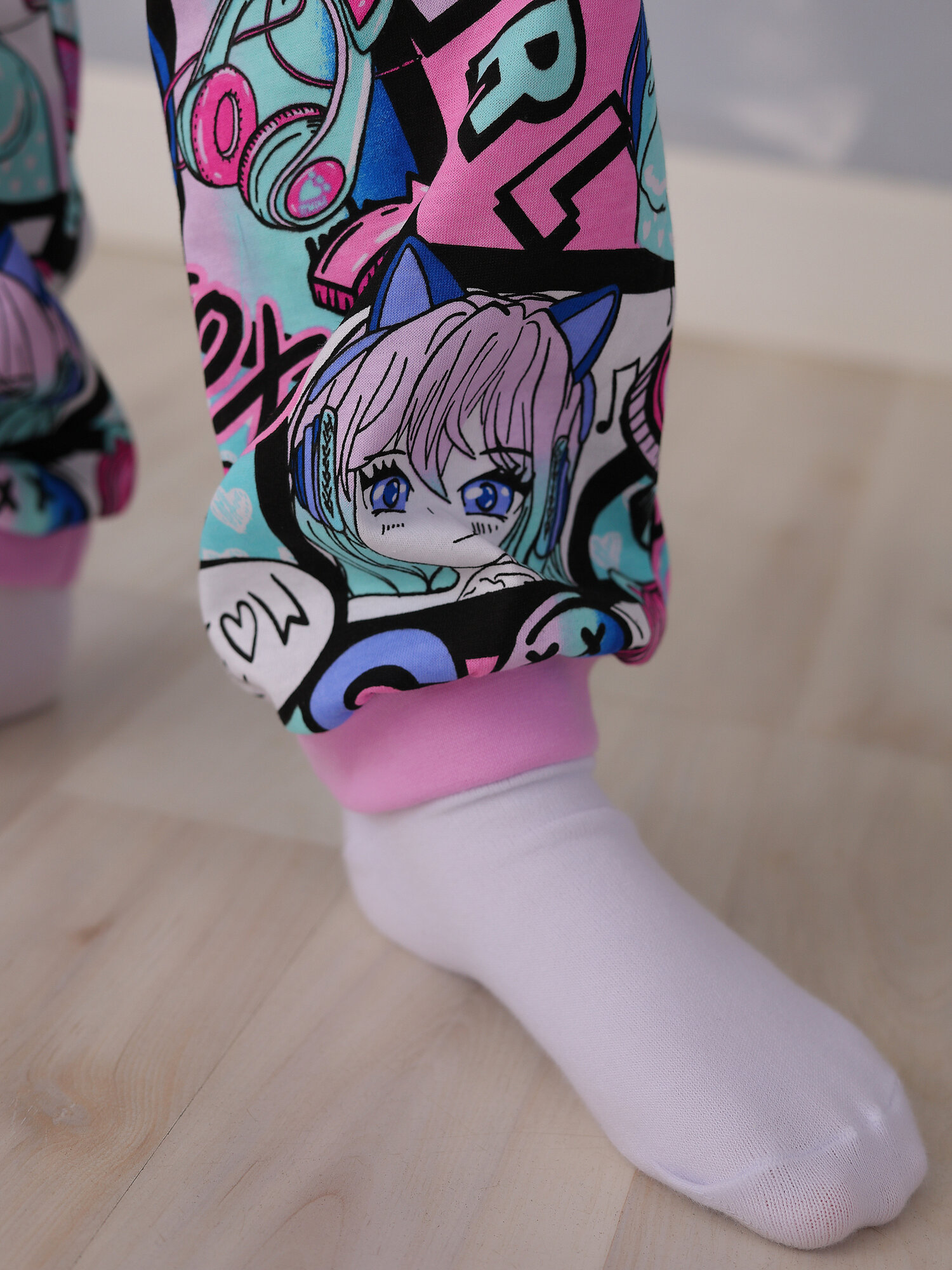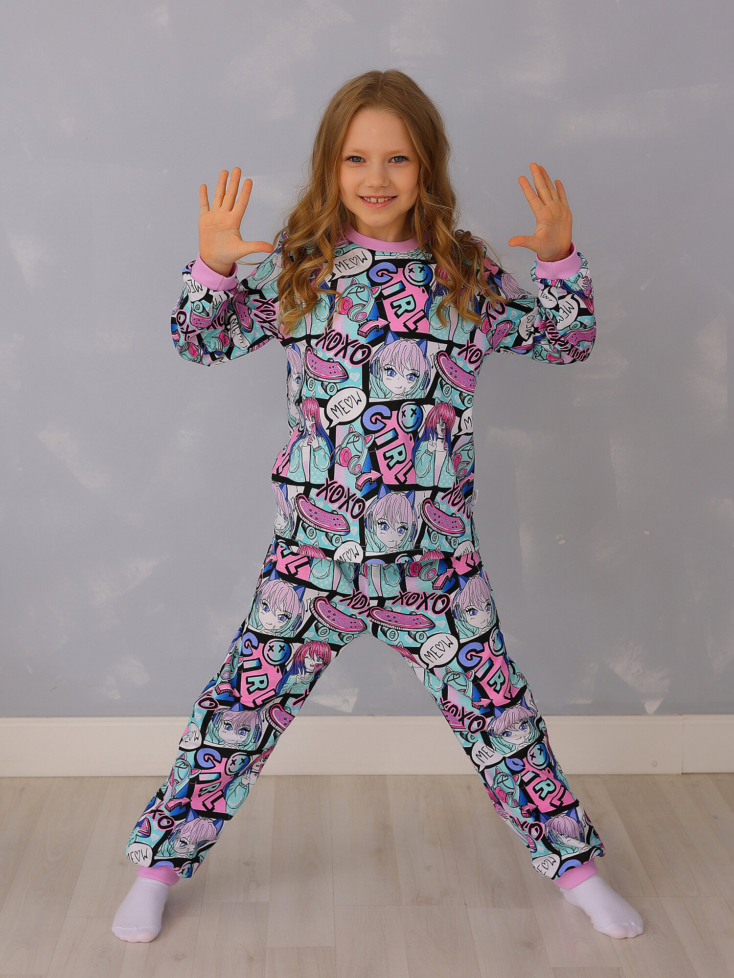 Пижама Веселый Малыш Аниме, размер 110, голубой/розовый