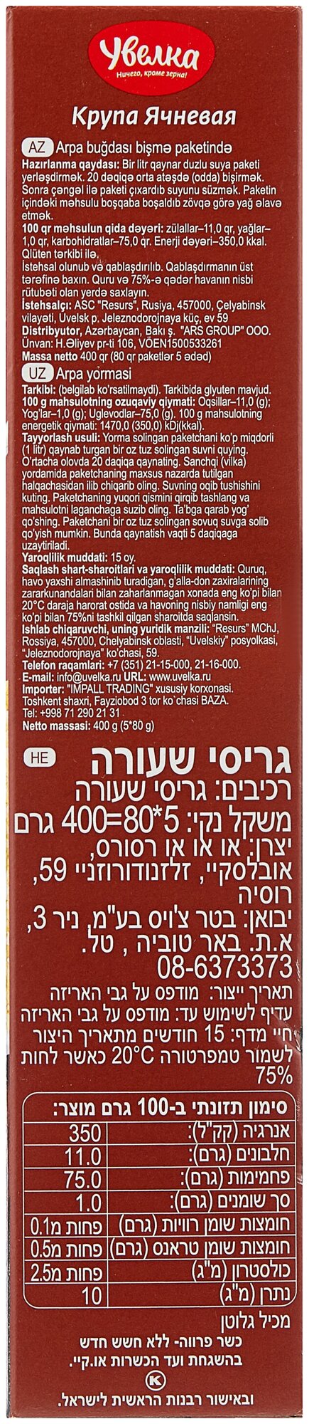 Крупа Увелка ячневая 5шт*80г в варочных пакетах интересное: