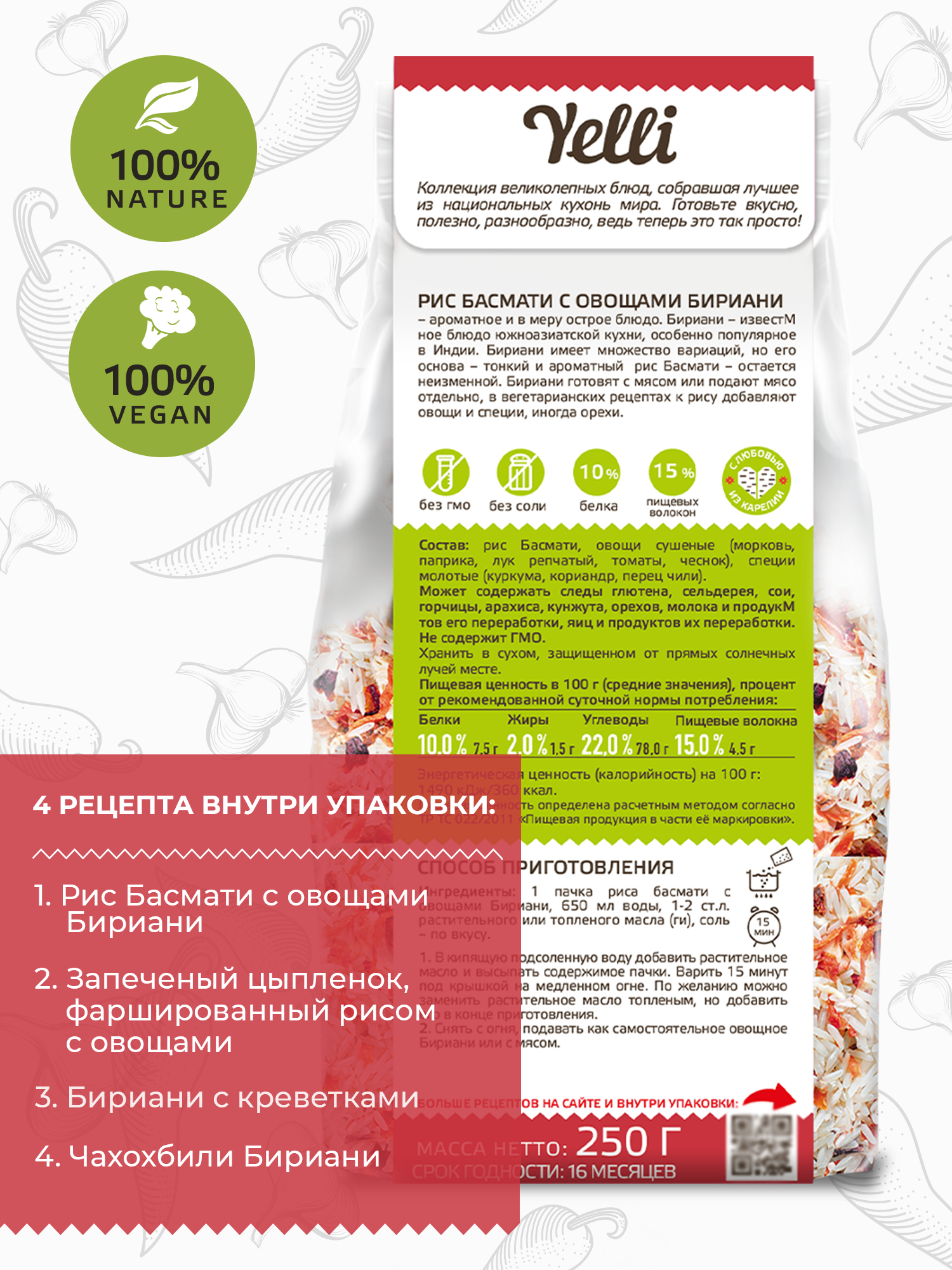 Ниже Вы можете прочитать отзывы на Рис Басмати с овощами Бириани Yelli 250г, ознакомится с подробными характеристиками, посмотреть интересные обзоры и фотографии на Рис Басмати с овощами Бириани Yelli 250г.
