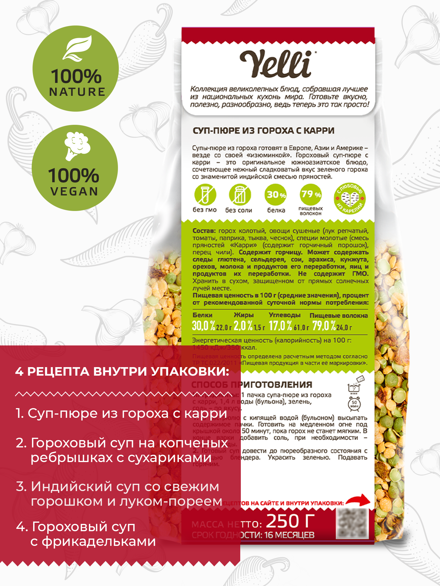 Суп-пюре из гороха с карри Yelli 250г интересное: