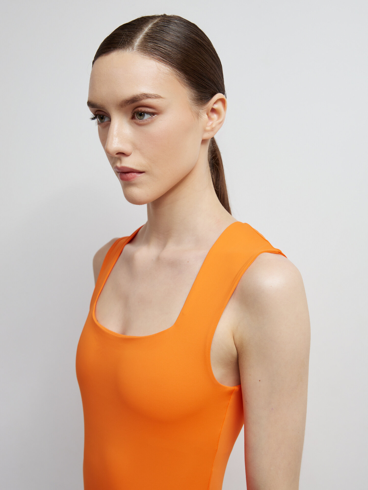 Боди женское без рукавов вечернее утягивающее мандариновый S