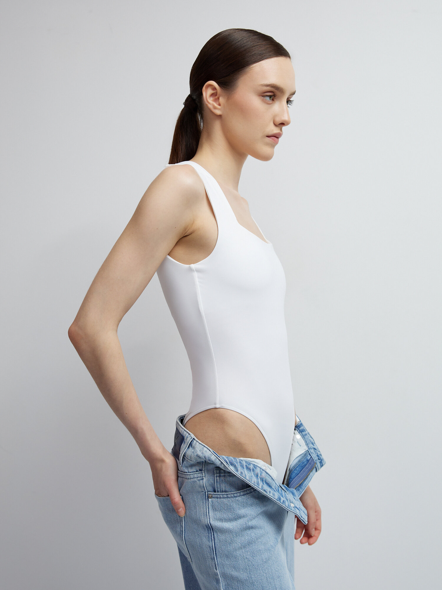 Боди женское без рукавов вечернее утягивающее молочный XS