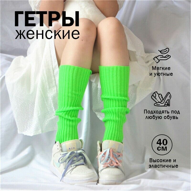 Купить Гетры женские Ярко-зеленые. Вязаные гетры - чулки теплые. Яркие гетры для вечеринки в стеле 90-х, для ретровечеринки