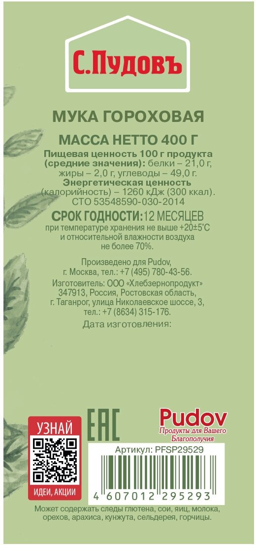 Мука гороховая С. Пудовъ, 400 г интересное: