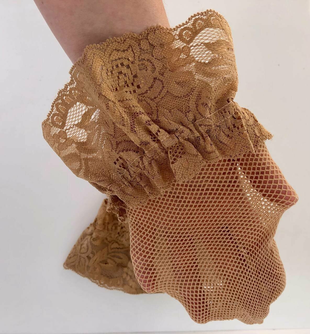 Чулки с ажурной резинкой в мелкую бежевую сетку размер 4-5 интересное: