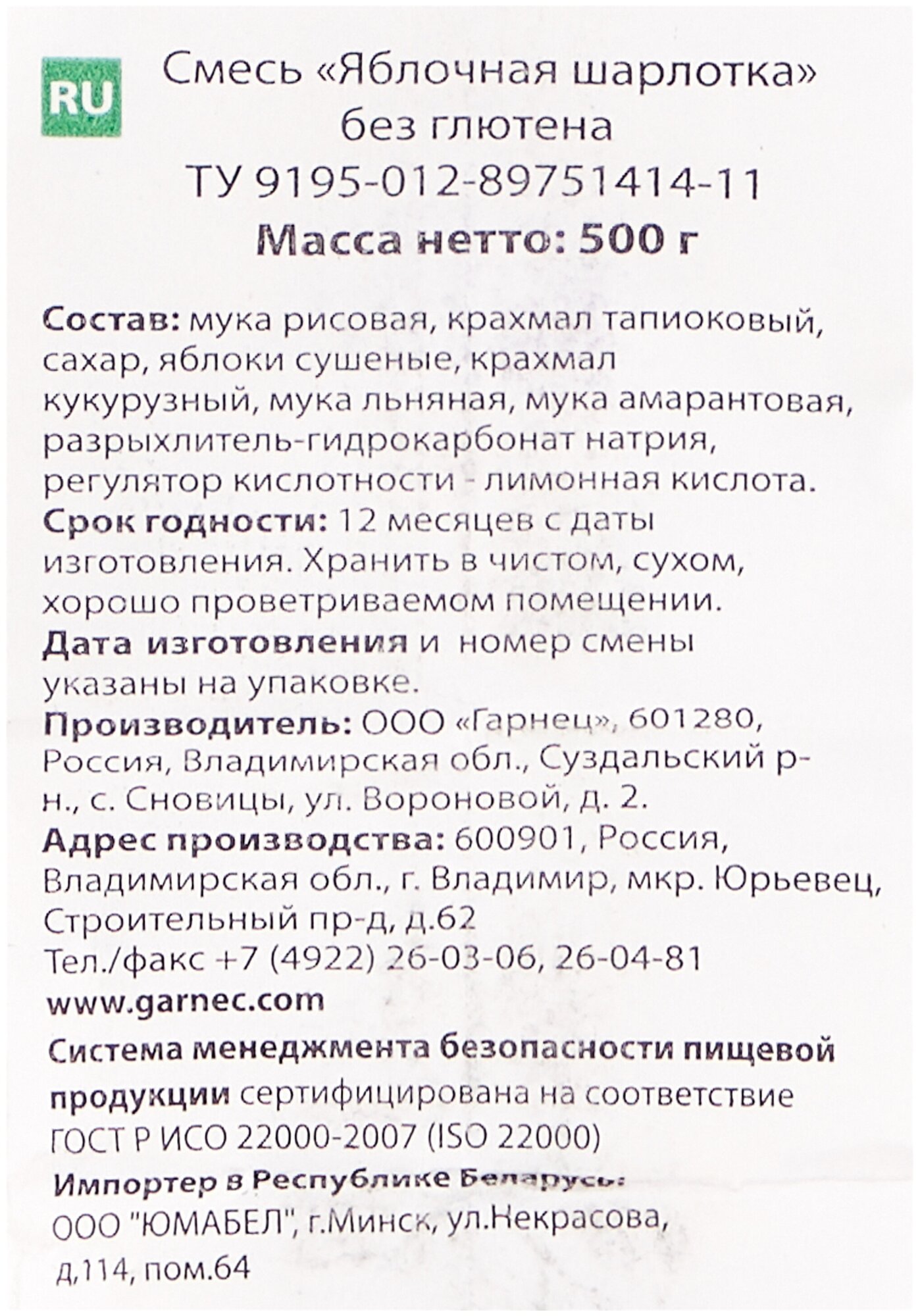GARNEC смесь для выпечки без глютена "Яблочная шарлотка" 500 г. интересное: