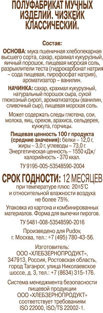 Чизкейк классический С.Пудовъ, 350 г интересное: