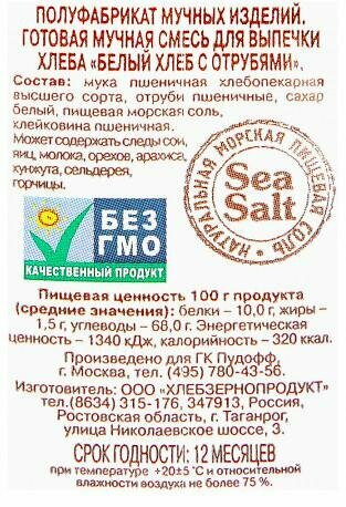Купить Смесь для выпечки «С.Пудовъ» белый хлеб с отрубями, 500 г