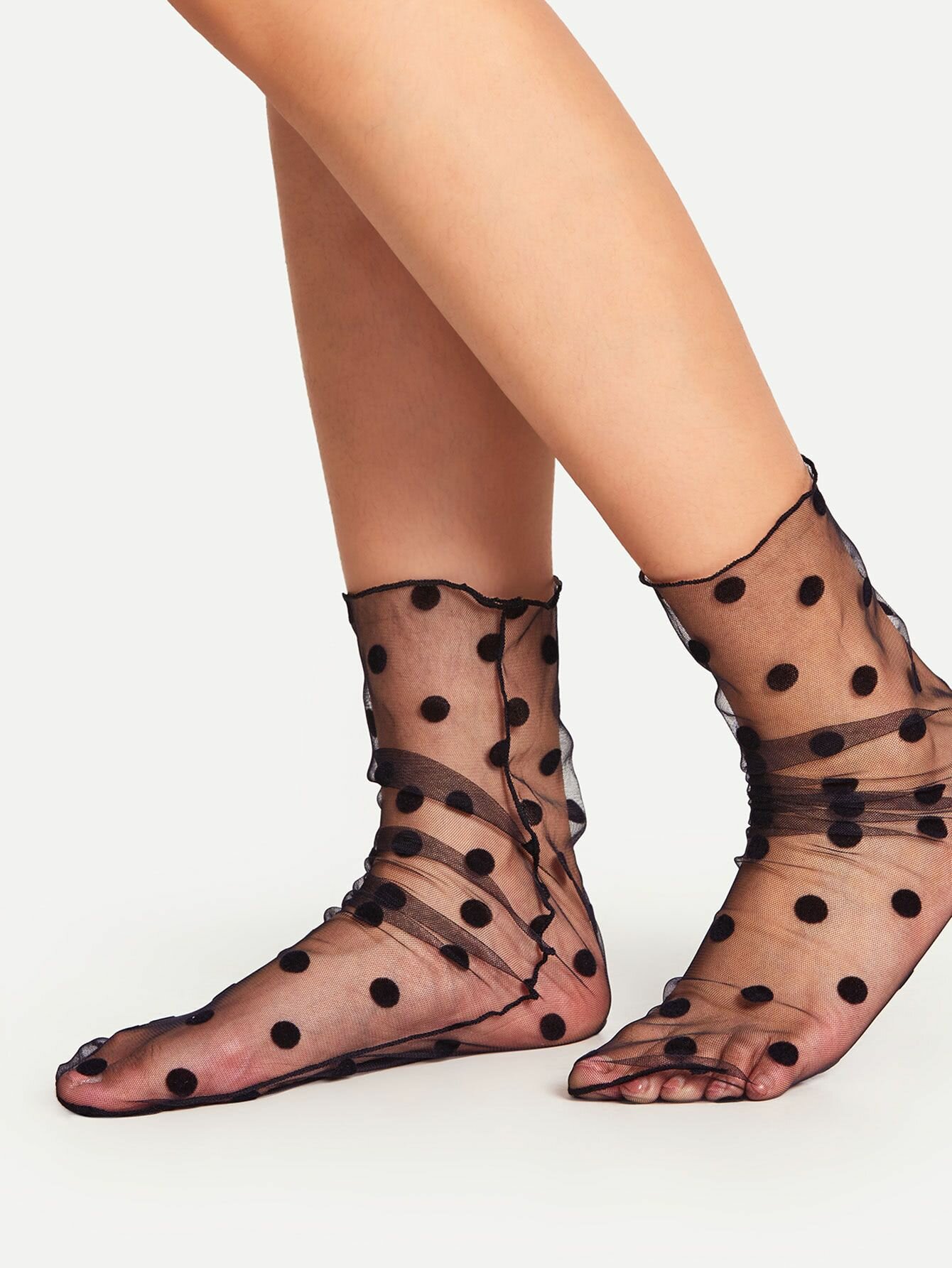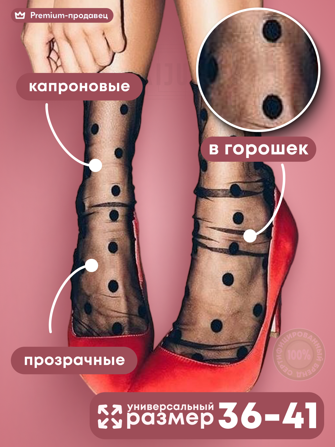 Носки женские, капроновые носки, в горошек, черные, универсальный размер 36-41 интересное: