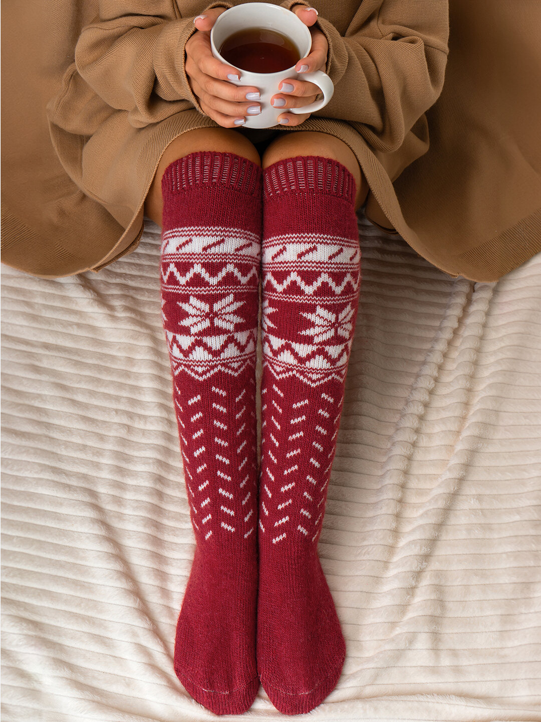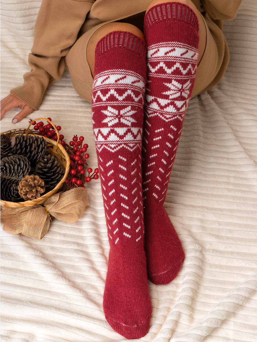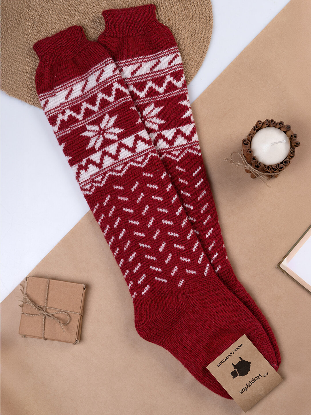 Гольфы женские теплые шерстяные HappyFox HFBN2340 снежинки.красный.белый 37-40 интересное: