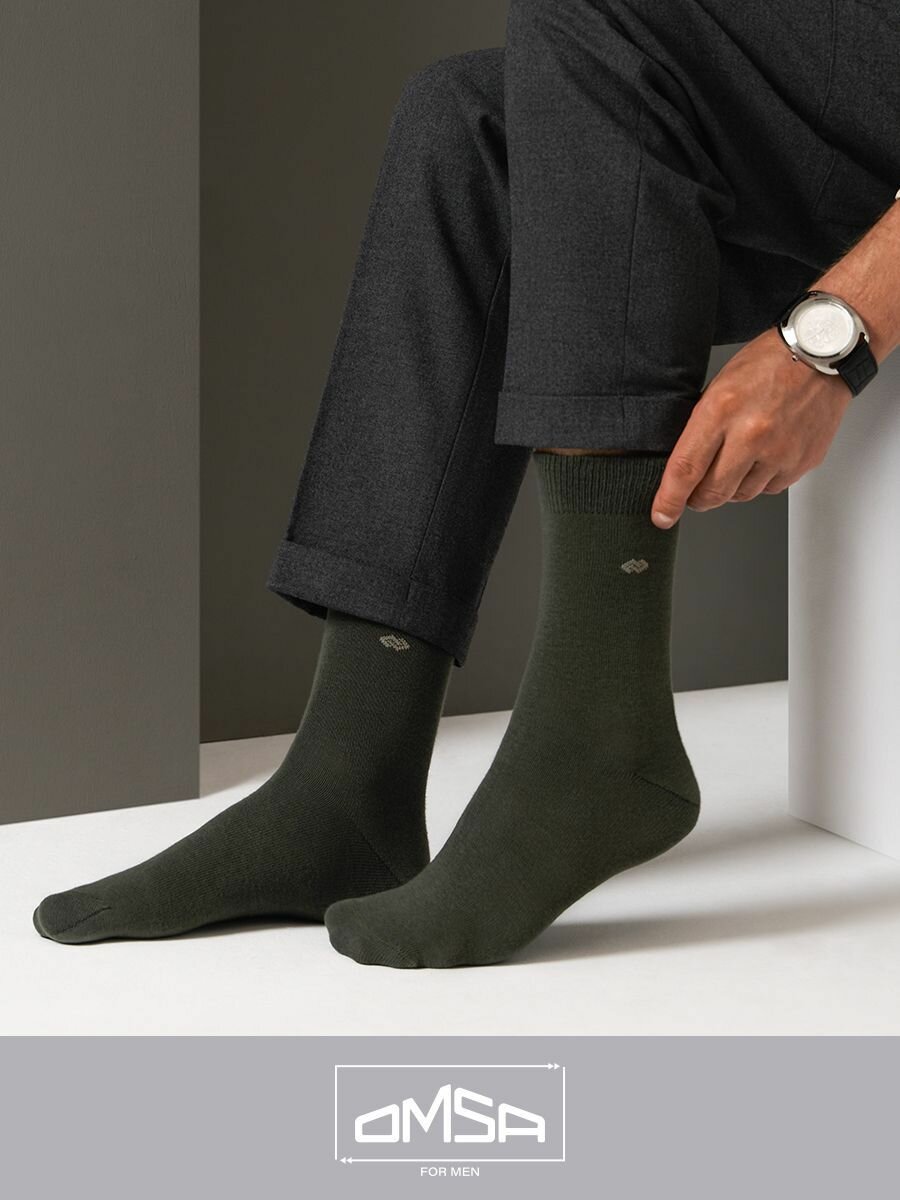 Носки мужские OMSA ECO 401 Colors классические всесезонные с комфортной резинкой, цвет Oliva размер 45-47