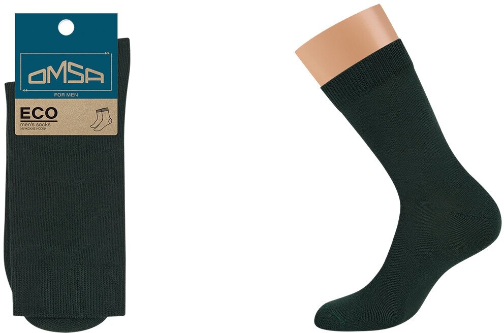 Купить Носки мужские OMSA ECO 401 Colors классические всесезонные с комфортной резинкой, цвет Verde Foresta размер 39-41