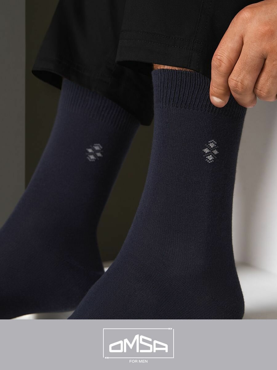 Носки мужские OMSA ECO 408, высокие, с рисунком, Цвет Blu "ромбик", Размер 45-47 (29-31)