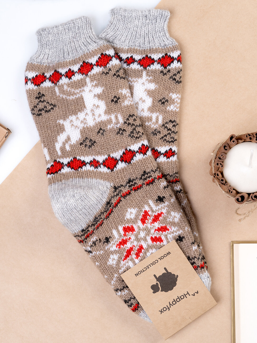 Носки новогодние шерстяные HappyFox HFBN2314 олень.капучино 37-40 интересное: