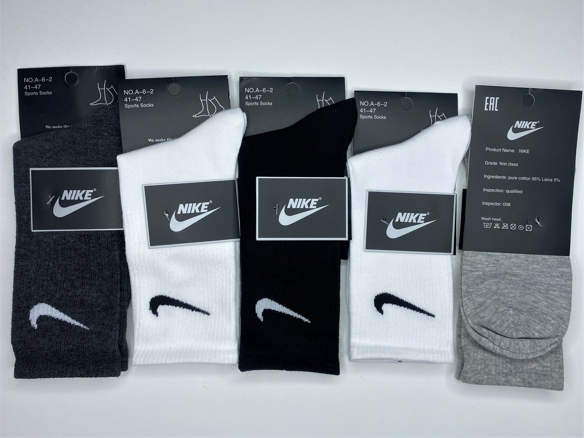 Носки спортивные высокие Nike мужские, 5 пар, размер 41-45, разноцветный. интересное: