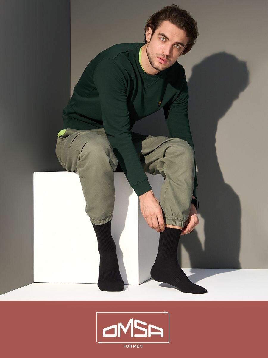 Носки мужские OMSA ACTIVE 116 высокие с широкой резинкой Nero 45-47 (спайка 3 шт.)