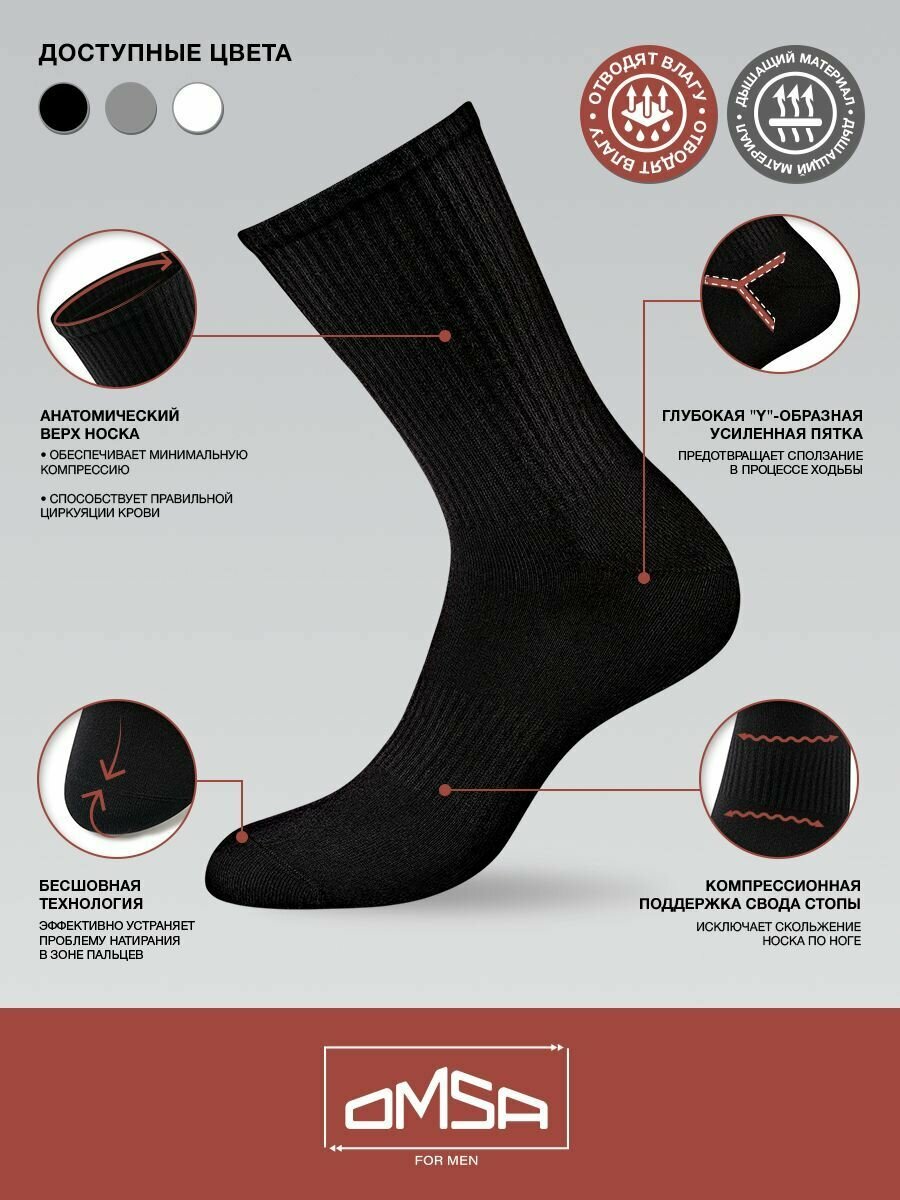 Носки спортивные Omsa Active 116, набор (3 шт.), размер 45-47, nero (чёрный)
