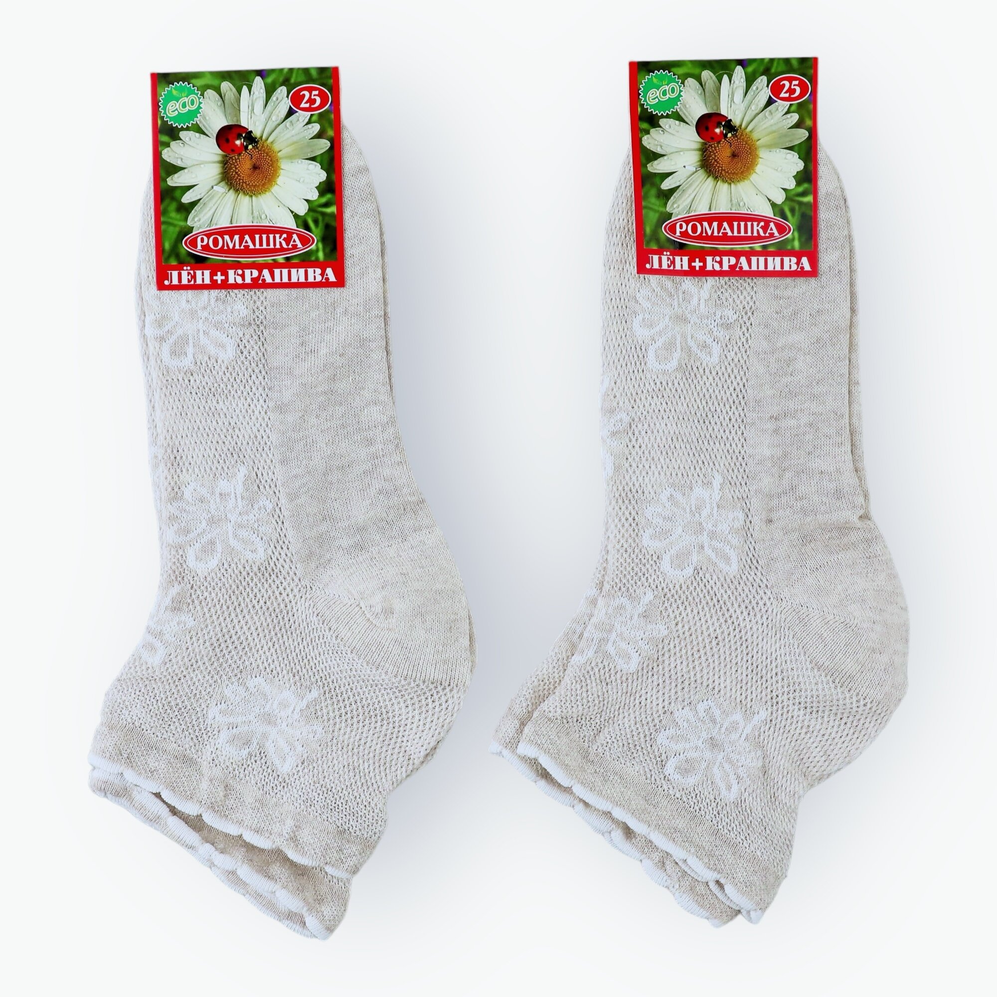 Носки женские бежевые Ромашка (Лен + Крапива) - 2 пары - Размер 38-40 интересное: