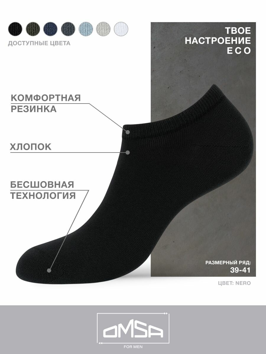 Носки мужские OMSA ECO 404, летние, набор 5 пар, Цвет Nero, Размер 39-41
