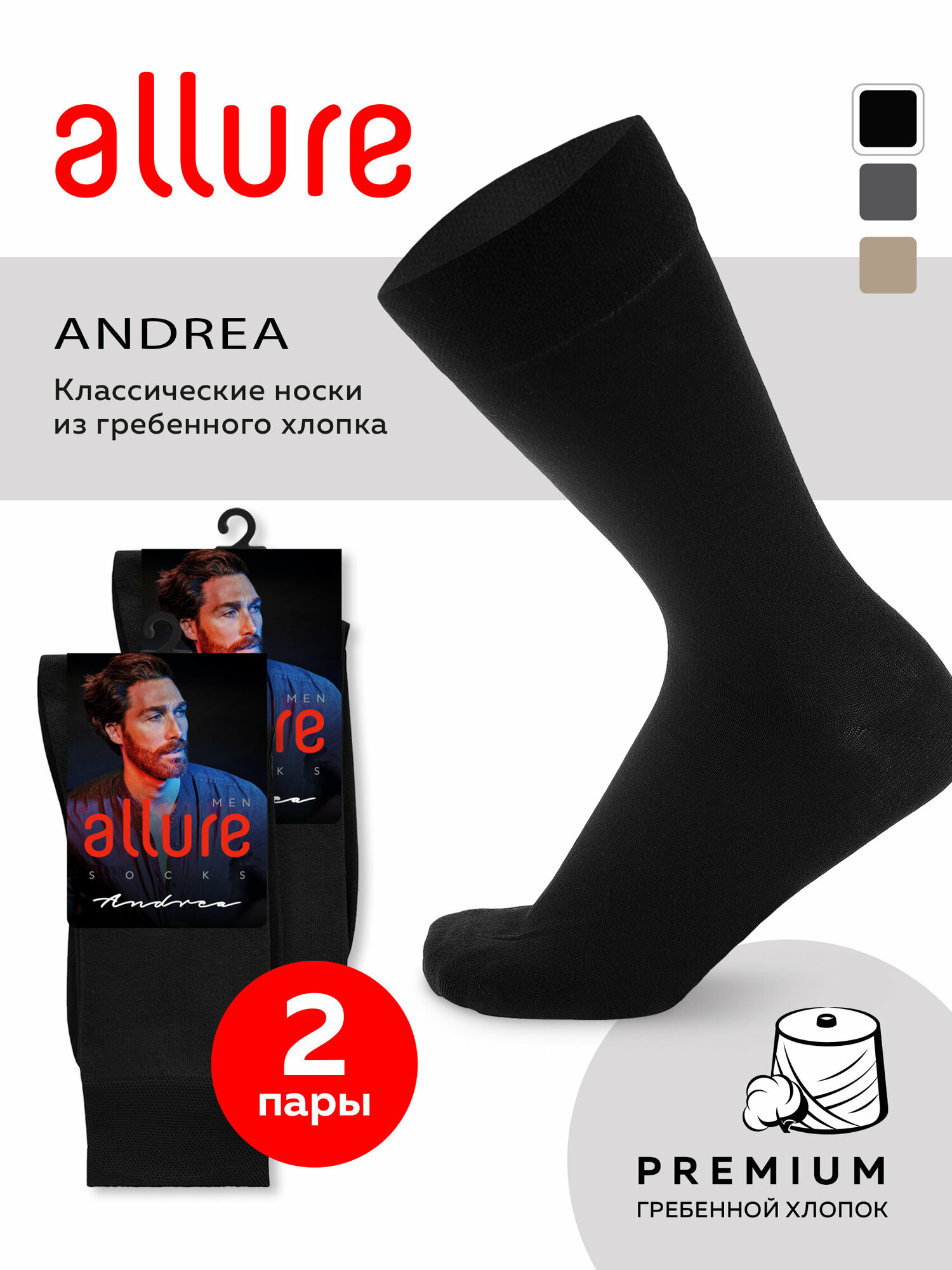 Носки м. ALR ANDREA СВ.серый 3 (39-41) спайка 2 шт, носки мужские, классические, высокие, длинные, хлопок, набор мужских носков