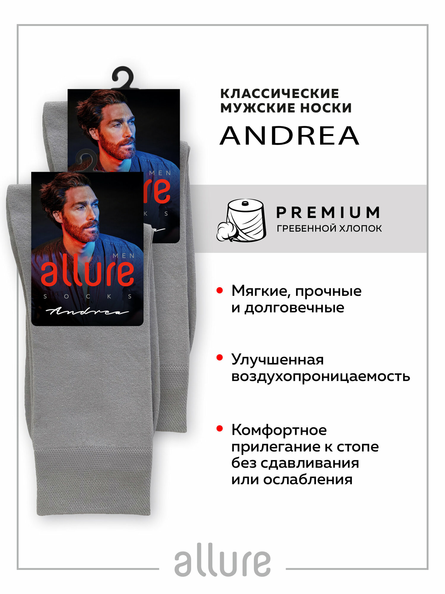 Носки м. ALR ANDREA СВ.серый 4 (42-44) спайка 2 шт, носки мужские, классические, высокие, длинные, хлопок, набор мужских носков