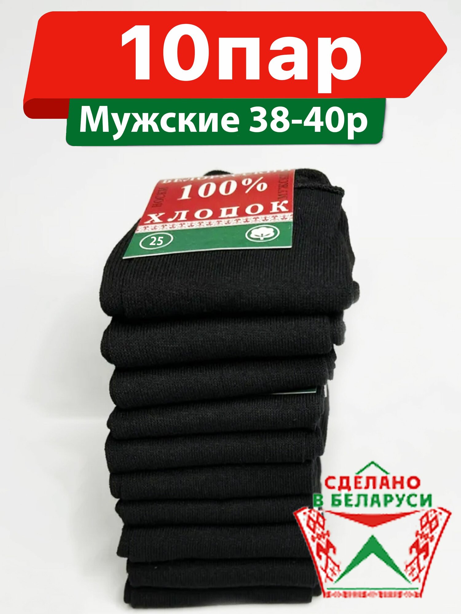СохранитьМужские носки "Белорусский Хлопок 100%", 10 пар ГОСТ 8541-94 ( 25 Размер 38-40, Черный, МС-20 ) Белорусские носки купить, для мужчины, выгода интересное: