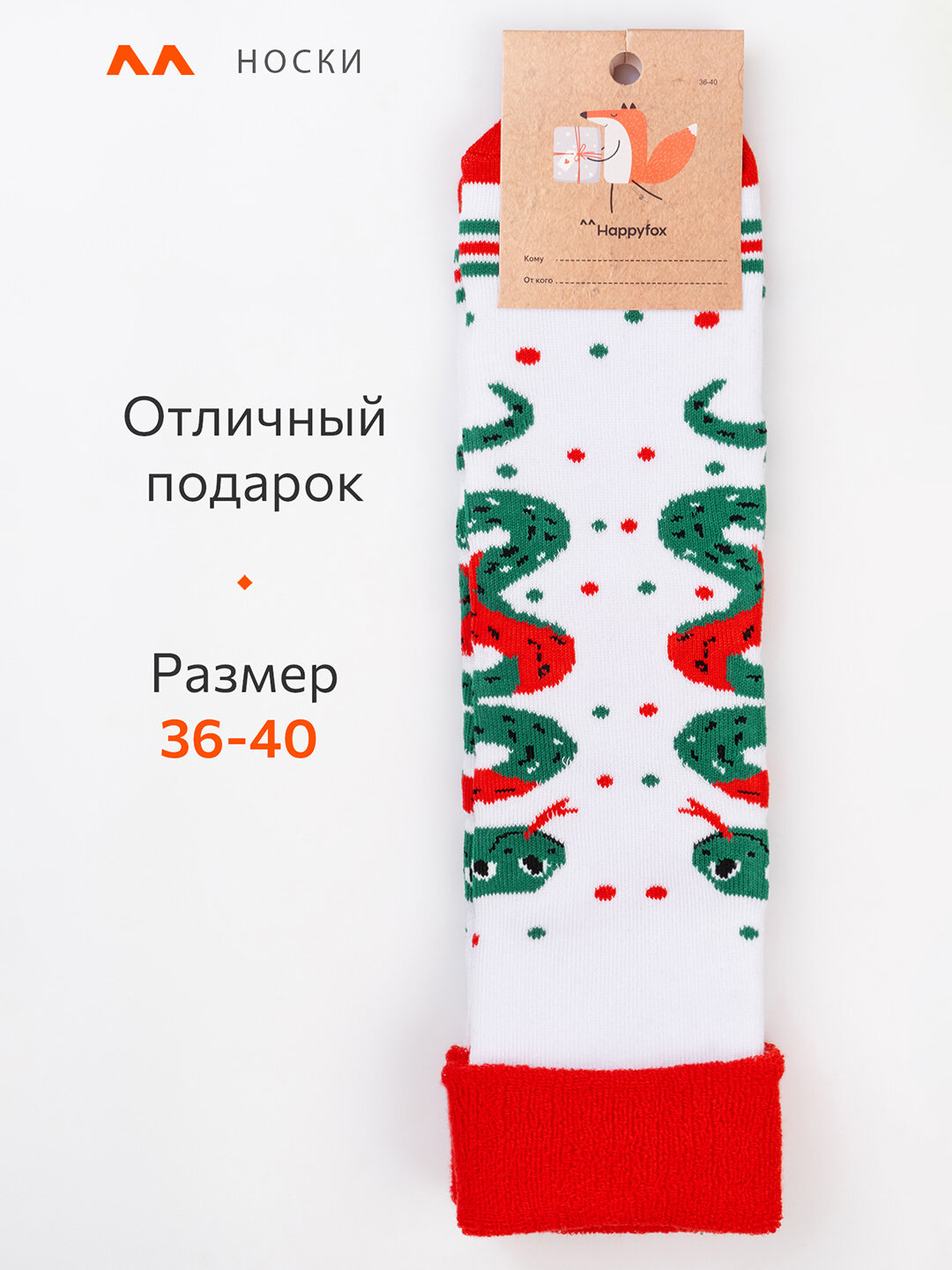 Купить Носки новогодние символ 2025 год Змеи теплые HappyFox HF3125A змея.белый 36-40