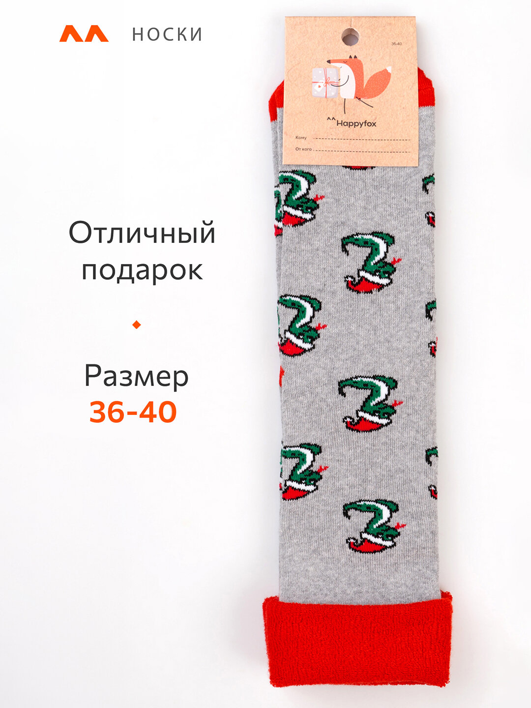 Купить Носки новогодние символ 2025 год Змеи теплые HappyFox HF3125A змейки.серыймеланж 36-40