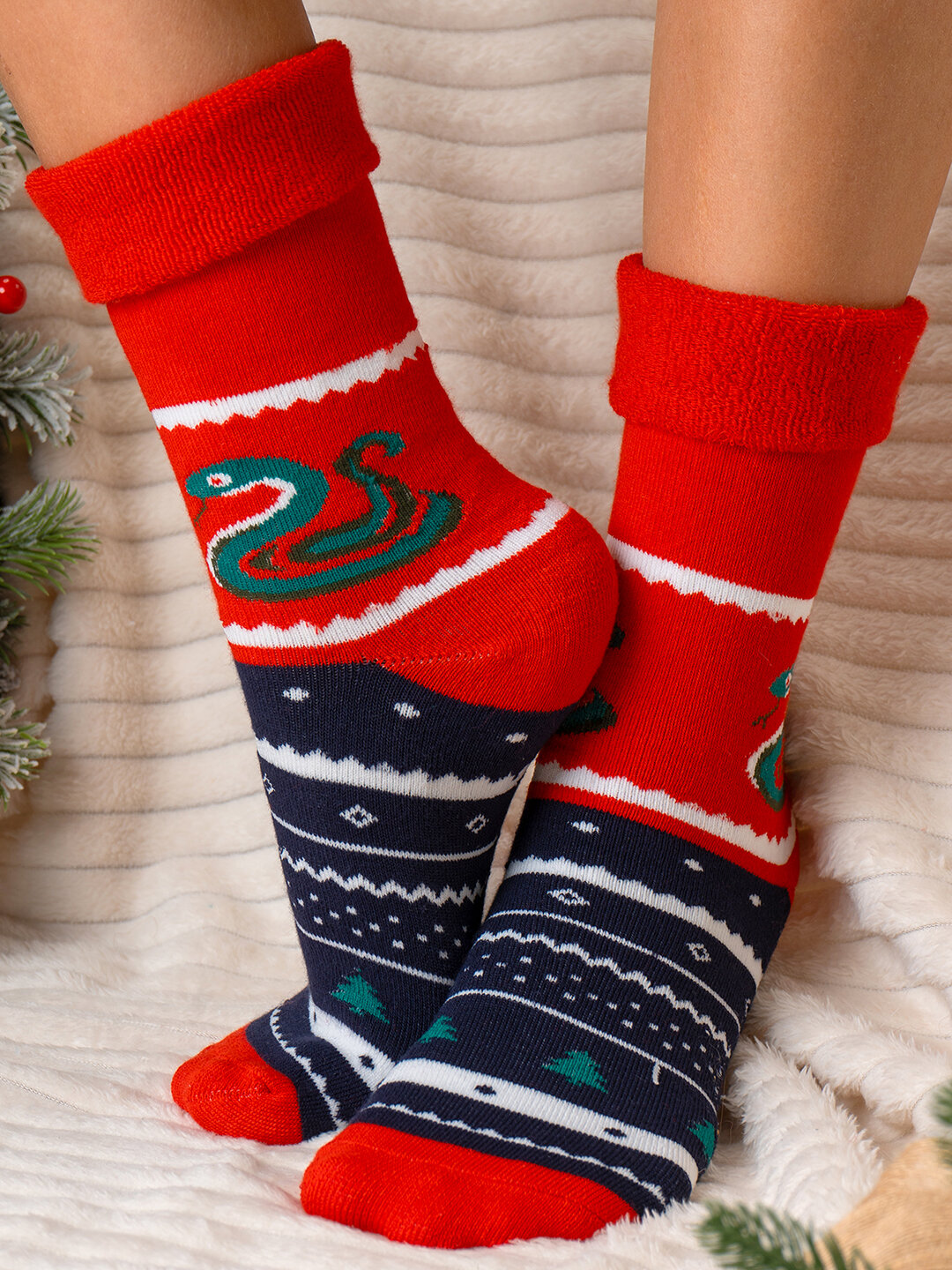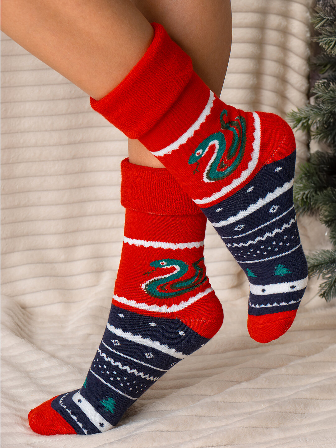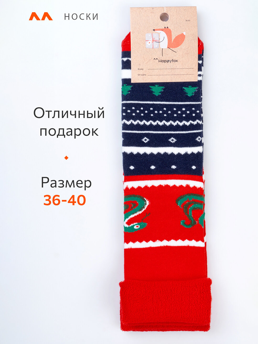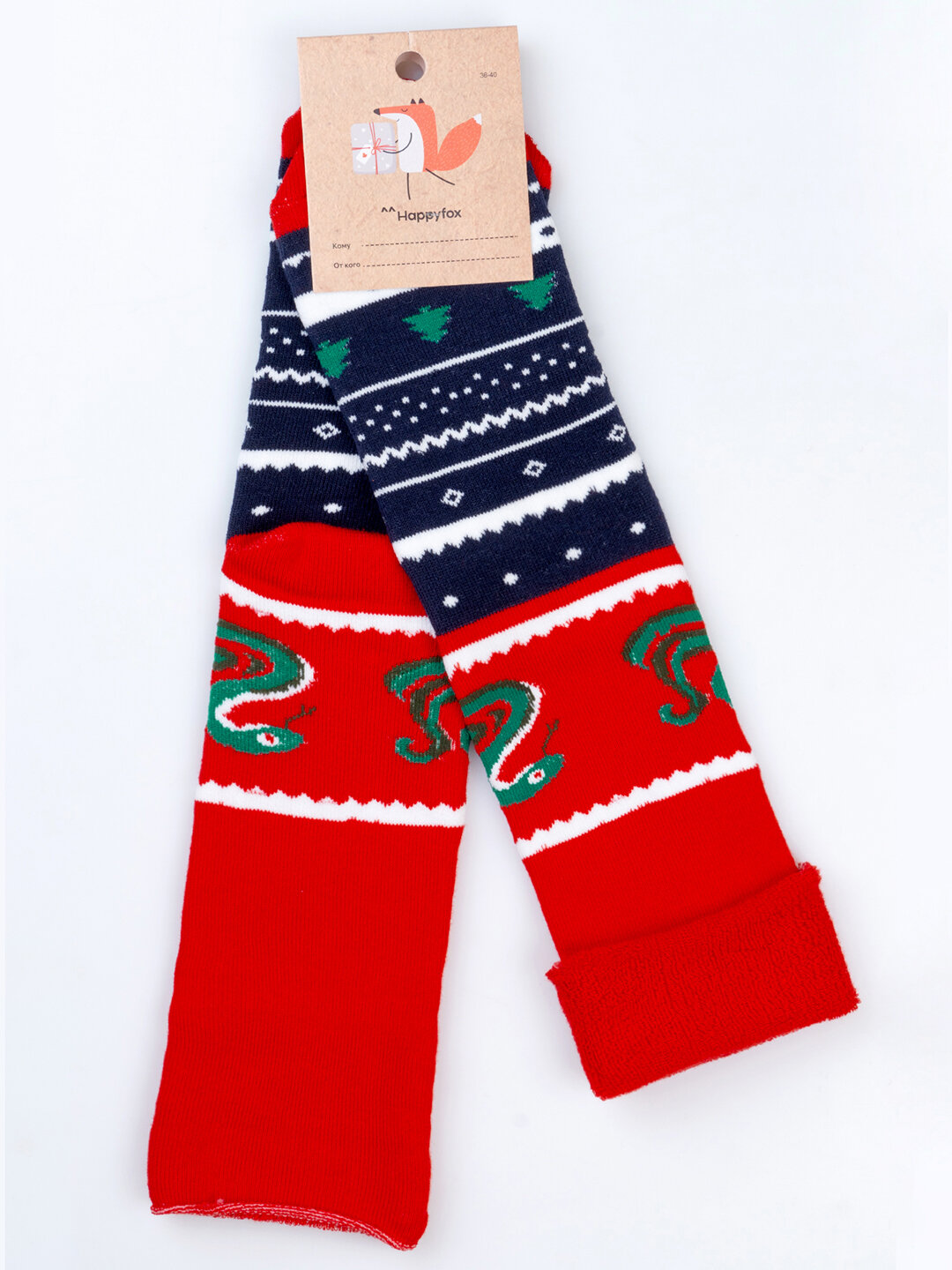 Купить Носки новогодние символ 2025 год Змеи теплые HappyFox HF3125A т.синий.красный 36-40