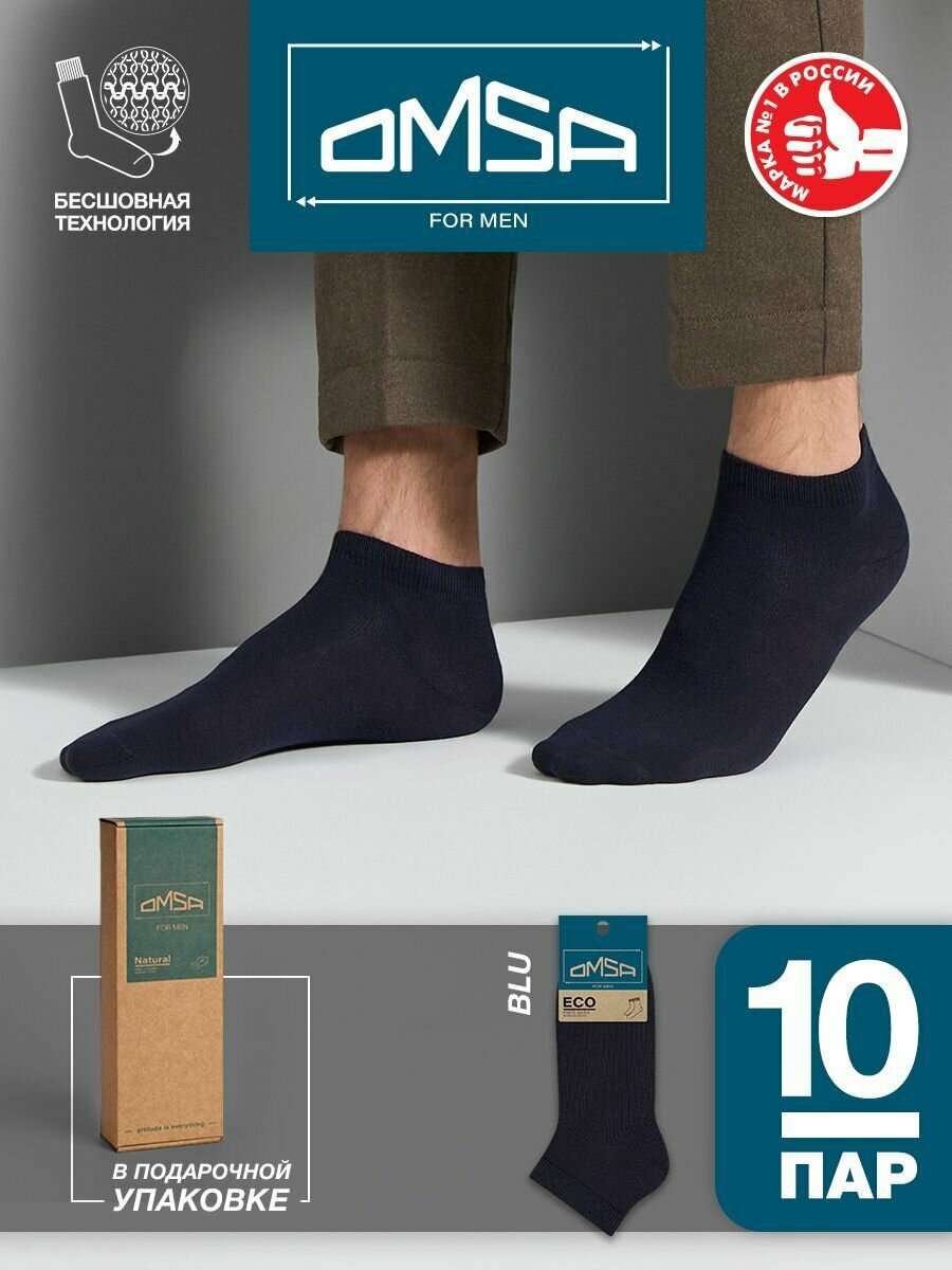 Носки мужские OMSA ECO 402, летние, комплект 10 шт, Цвет Blu, Размер 39-41 (25-27), уп."Крафт"