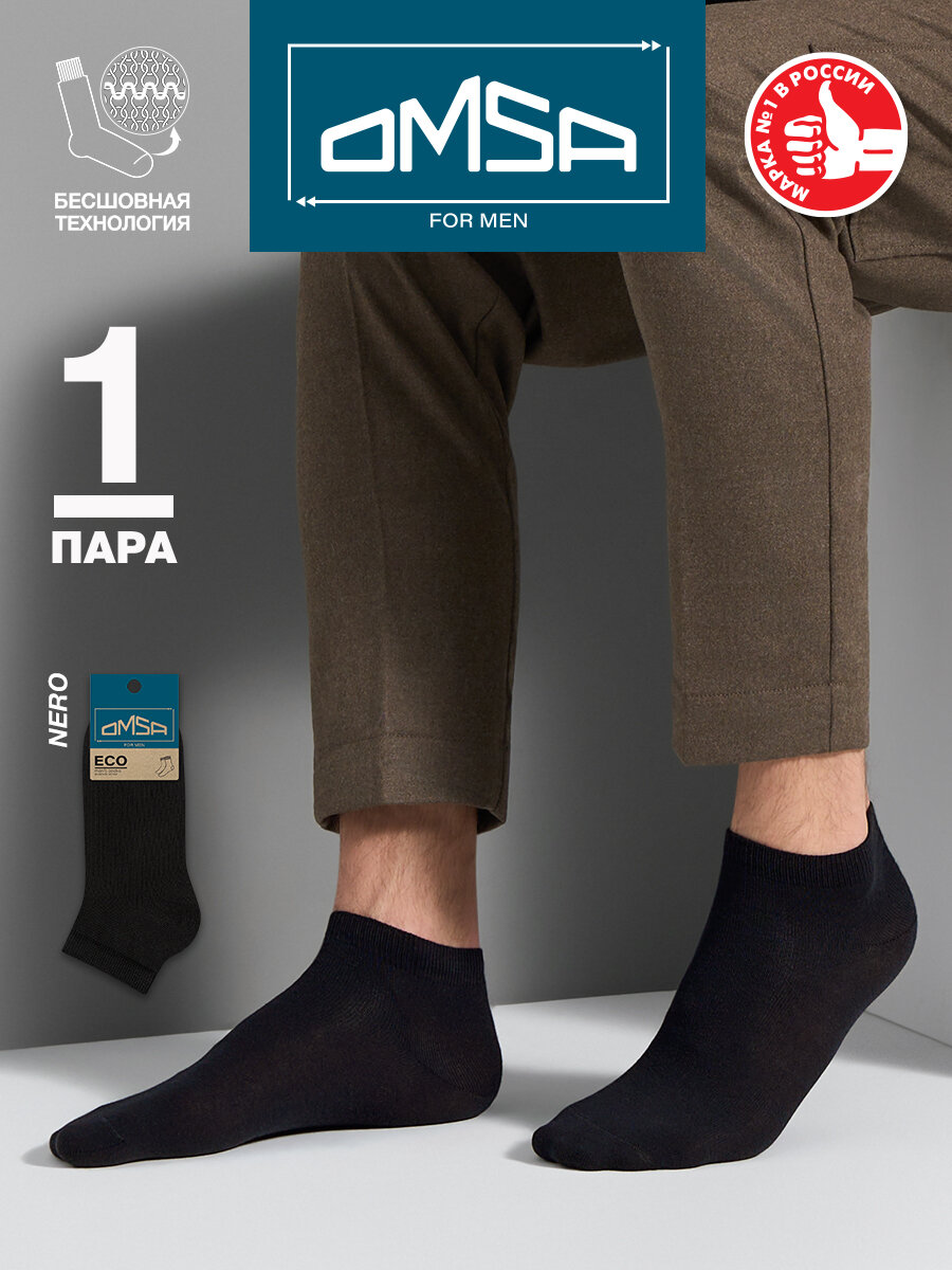 Носки мужские хлопковые Omsa ECO 402 гладь укороченный Nero 42-44