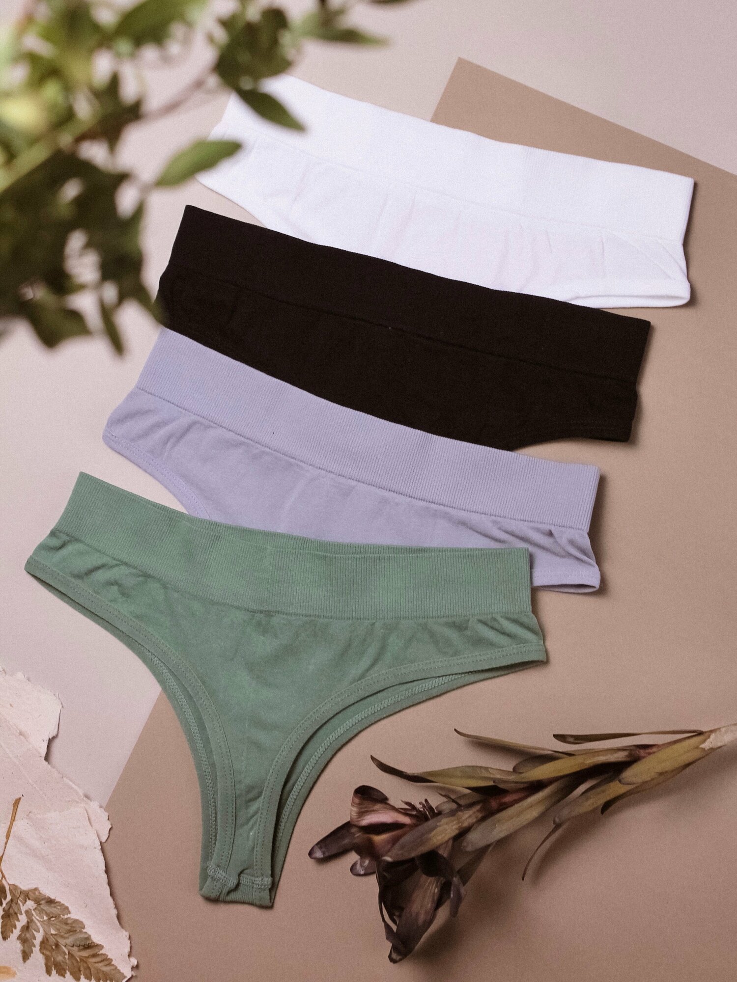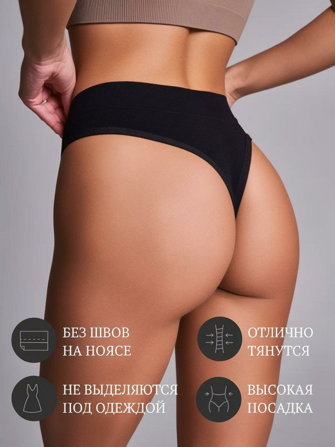 Бесшовные трусы стринги набор высокие