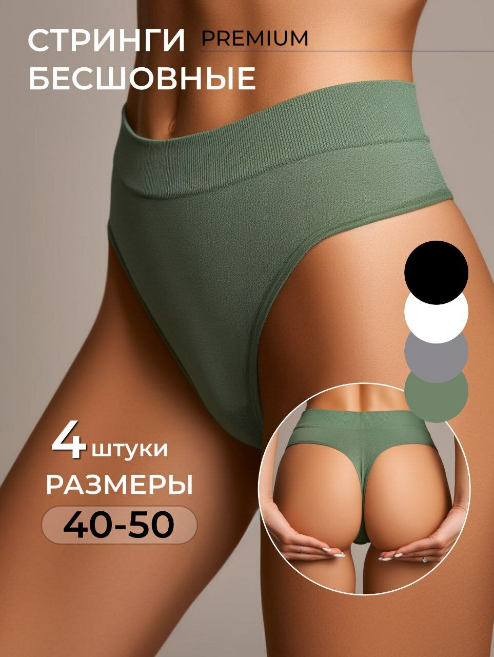 Бесшовные трусики стринги 4 шт, размер L