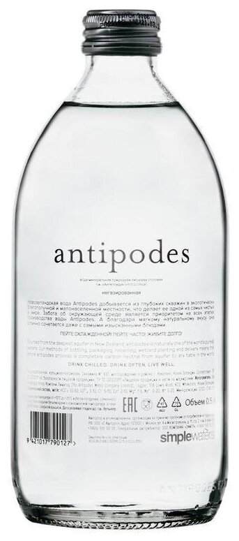 Минеральная вода Antipodes / Антипоудз Негазированная стекло 0.5 л (24 штук) интересное: