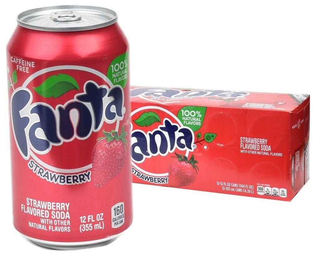 Газированный напиток Fanta Strawberry, США, 0.355 л, металлическая банка, 12 шт.