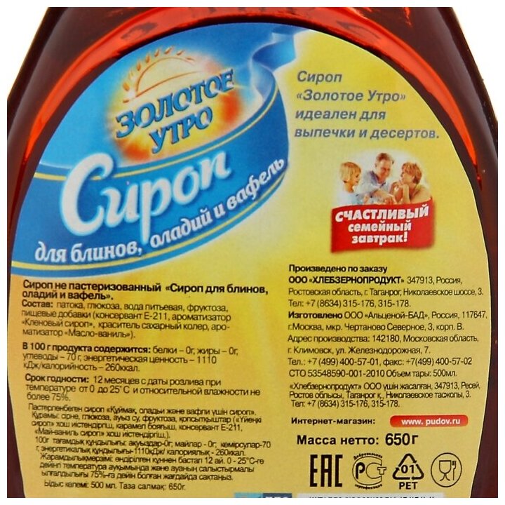 Сироп для блинов, оладий и вафель 650 гр. С.Пудовъ интересное: