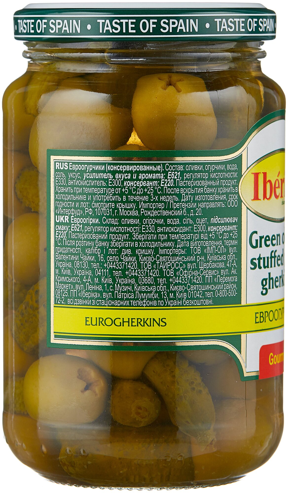 Iberica Оливки фаршированные евроогурчиками в маринаде, стеклянная банка 350 г