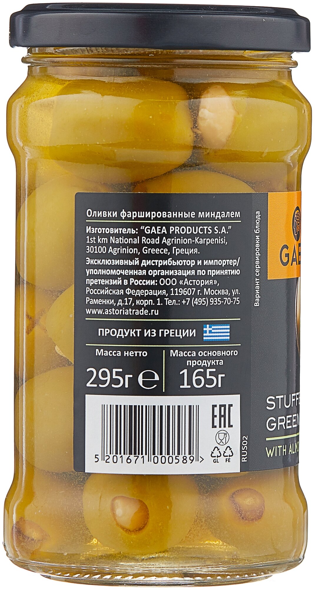 Оливки Gaea зеленые с миндалем, 295 г интересное: