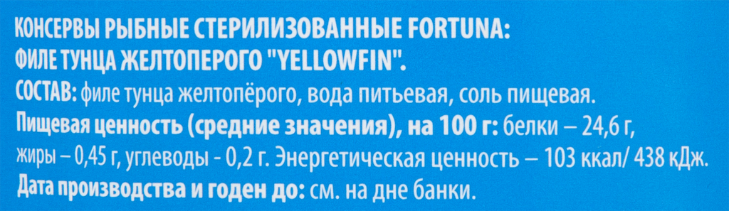 Тунец Fortuna филе yellowfin в собственном соку, 185г