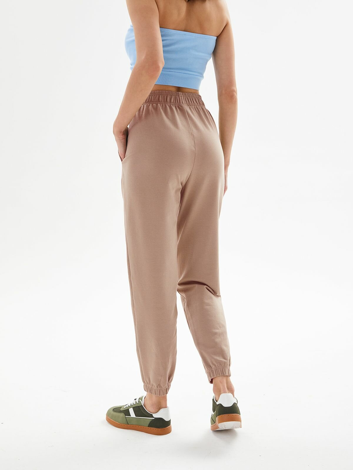 2019F2 Спортивные штаны джоггеры укороченные женские HIGH TEMP, Серо-бежевый, 38/40