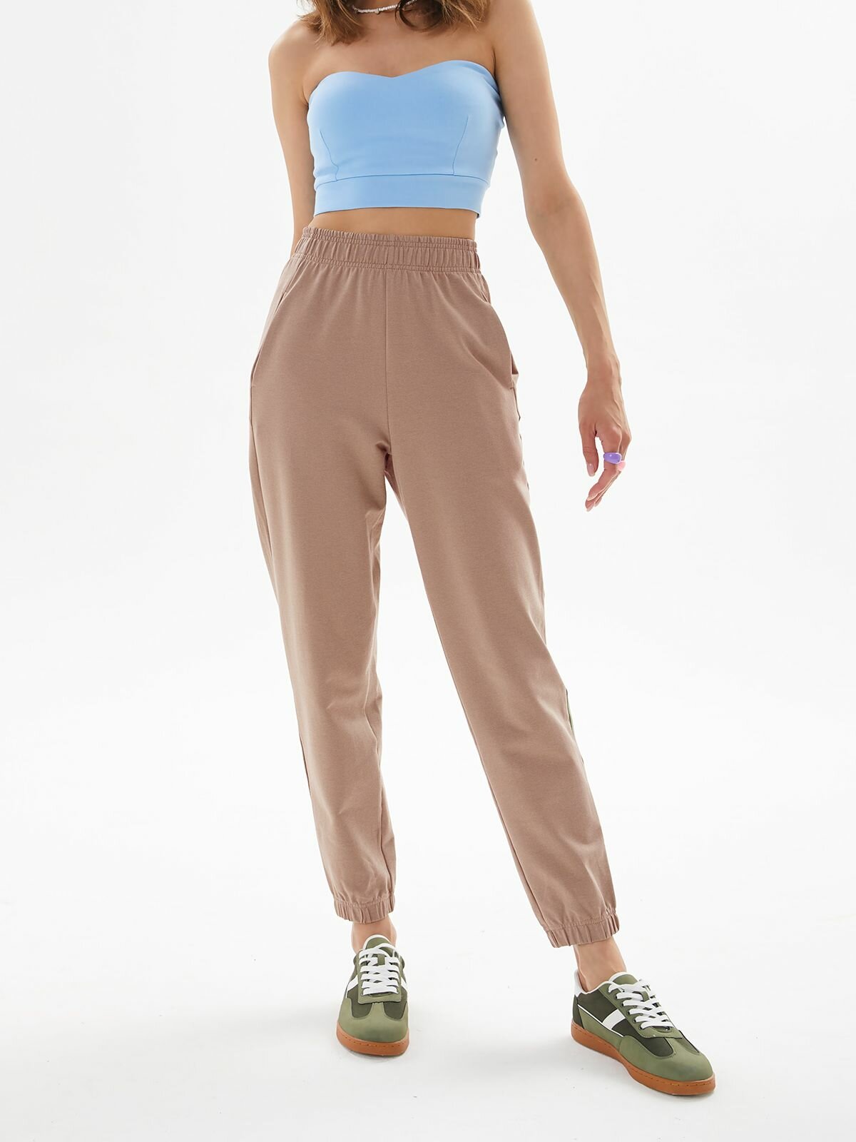 2019F2 Спортивные штаны джоггеры укороченные женские HIGH TEMP, Серо-бежевый, 42/44