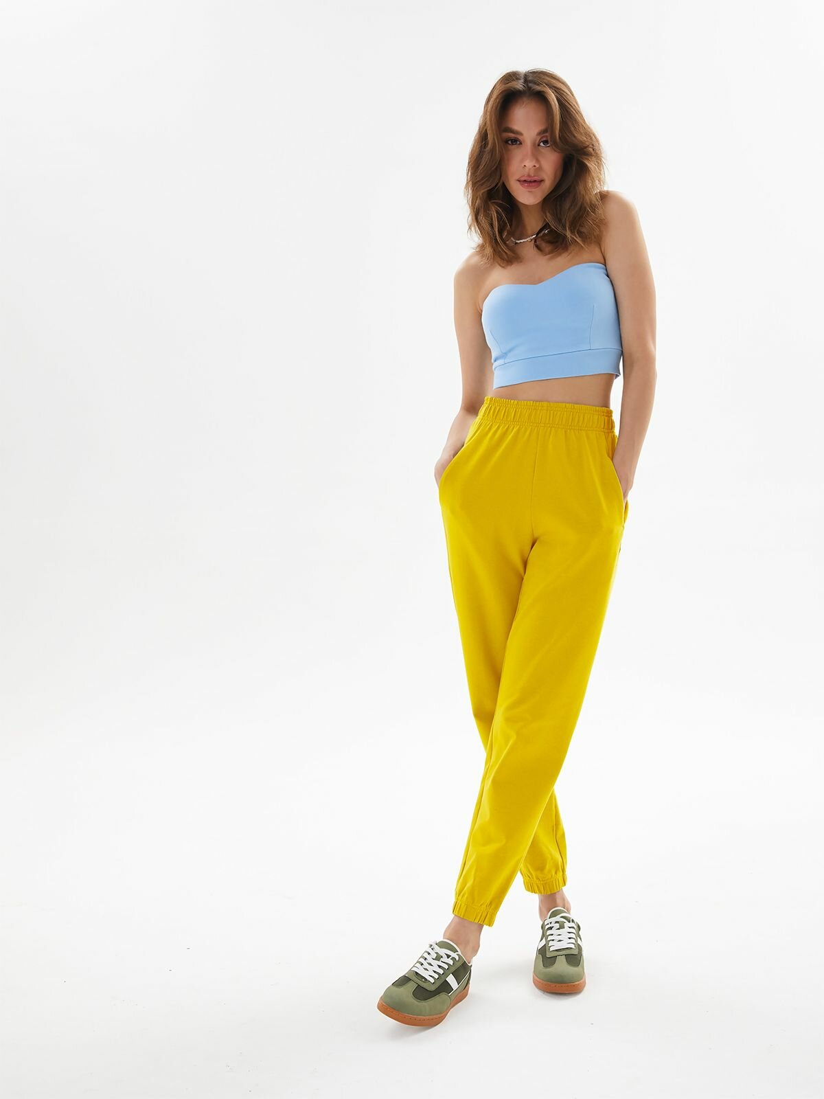 Сохранить2019F2 Спортивные штаны джоггеры укороченные женские HIGH TEMP, Горчичный, 38/40 интересное: