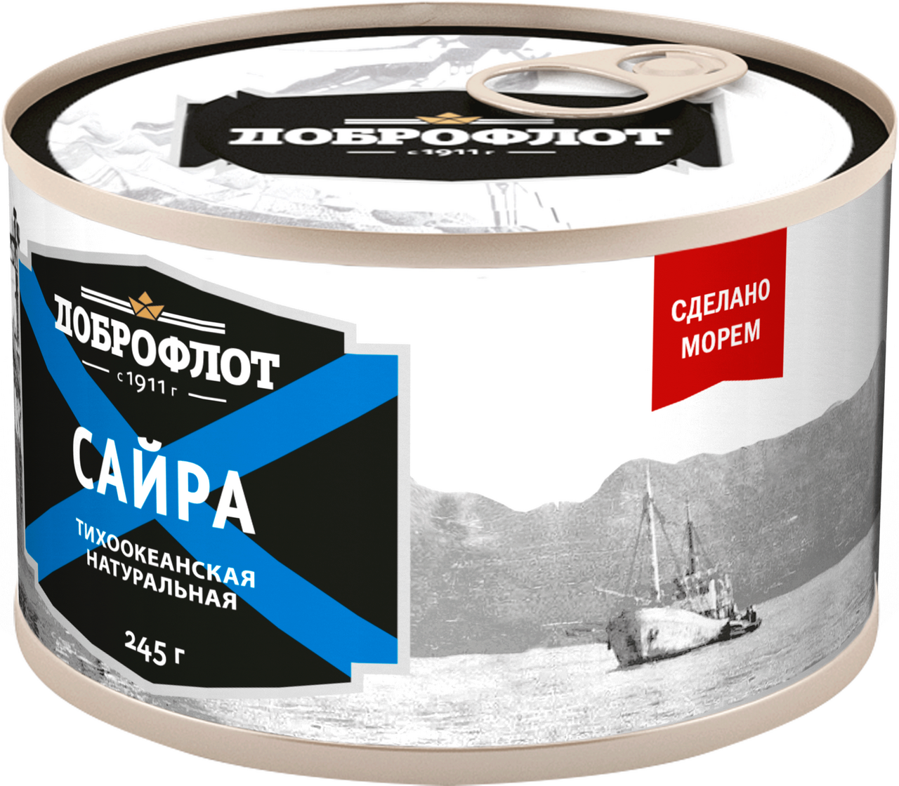 Сайра тихоокеанская натуральная "Доброфлот" 245г (с ключом) Южморрыбфлот
